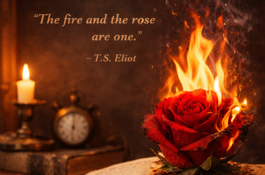 It was over time that I was drawn to the symbolism of "the fire and the rose". I took the imagery from one of my favorite poems - a long poem entitled "Four Quartets" by T.S. Eliot. In fact, I had posted lines from this poem on social media the day that I secretly took my shahada. The lines which most struck me are these:
